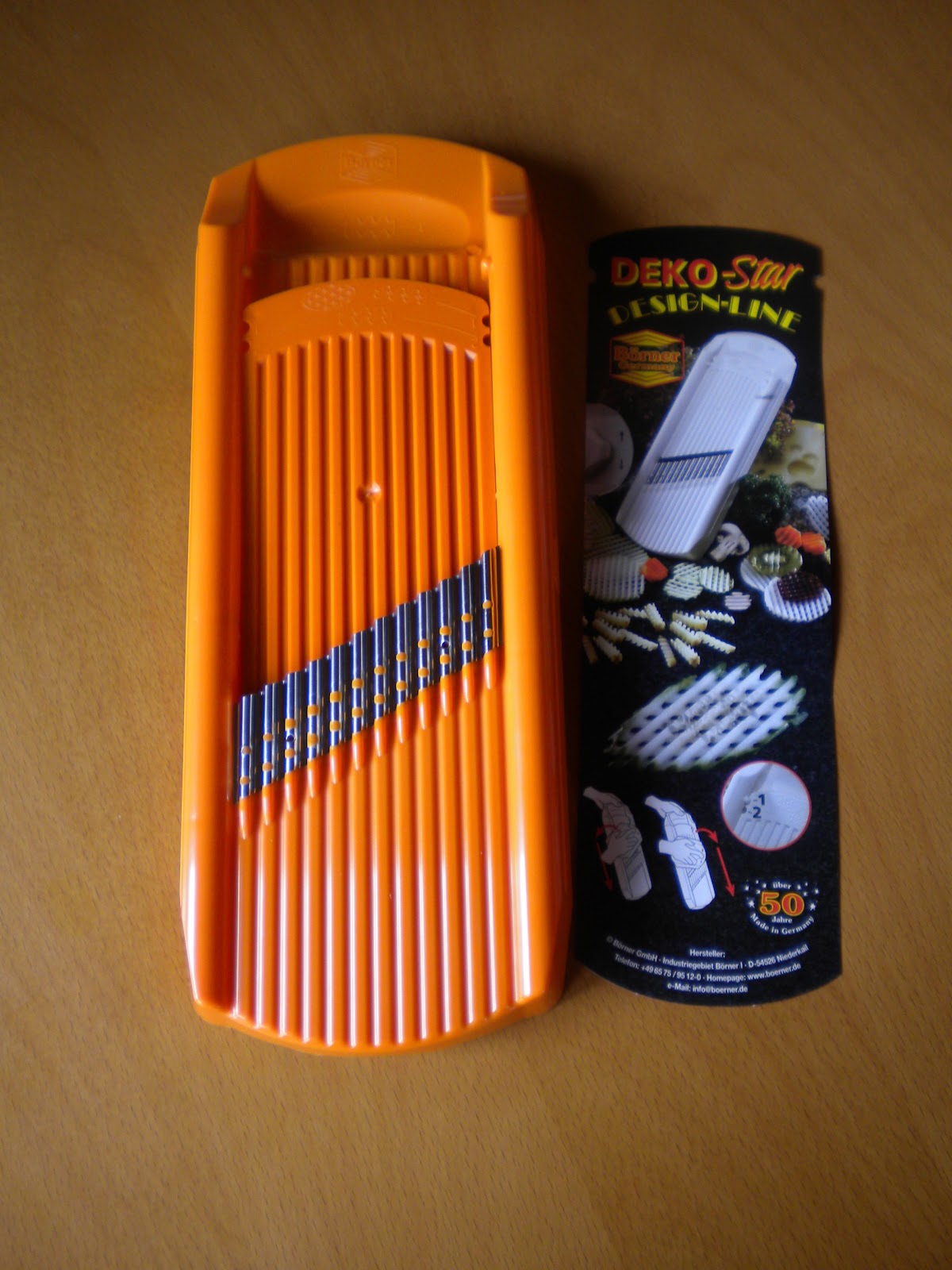Das bekannteste Produkt in diesem Shop ist wohl der Gemüsehobel V5 (bzw. die Vorgänger-Modelle), Von diesem Produkt wusste ich schon vorher - ich hatte  den Hobel schon auf diversen Messen und Vorführungen gesehen. Und auch einige meiner Freundinnen haben den Hobel. Die Hobel sind übrigens aus eigener Herstellung. Neu war mir allerding das die Firma Börner-Germany auch weitere tolle Sachen im Angebot hat.